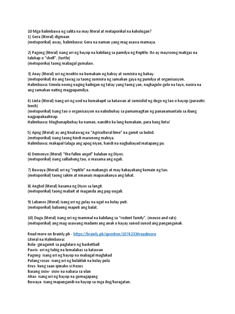 10 Mga Halimbawa Ng Salita Na May Literal At Metaporikal Na Kahulugan